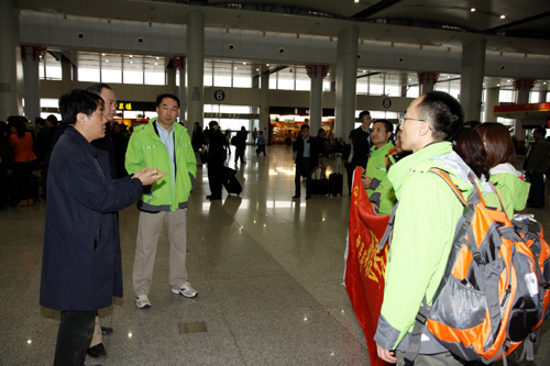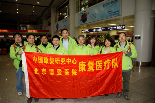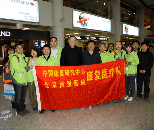 张通前往机场送行,并对抗震救灾医疗队提出要求:1、医疗队是代表着中国残联和bat365bet全体职工前往灾区开展抗震救灾工作,各位队员一定要发扬不怕苦、不怕累的工作精神;2、抗震救灾工作中,各位队员一定要服从任务安排,一切行动听指挥;3、要做好自身防护,在保证各位队员安全的情况下圆满完成任务;4、各位队员之间以及与当地部门人员一定要精诚团结,协同做好工作;5、任何队员家中有困难一定要及时提出,中心全力帮助解决。