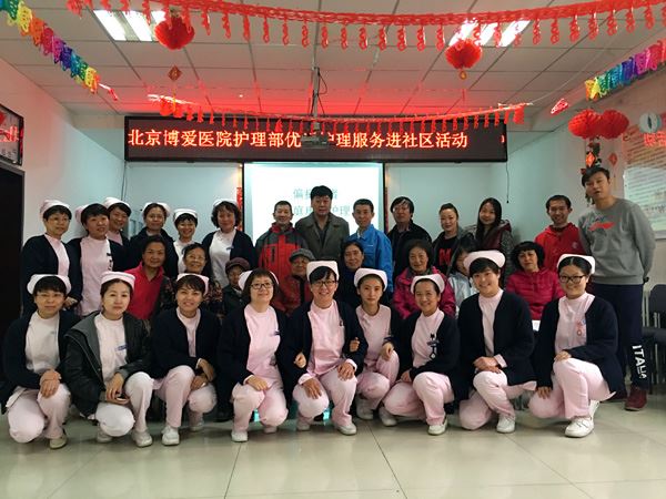 3月22日下午,北京博爱医院护理部走进马家堡双晨社区,开展优质护理服务活动。来自护理部、神经康复一科、神经康复二科、神经康复三科、贵宾中心、神内肾内科、中医科、骨科、心内科、综内科共15名护士长、护士,以及党办、医务处的2名党员参加了此次活动。30余名社区居民前来咨询。