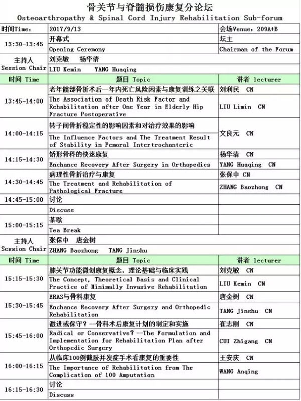 2017北京国际康复论坛——骨关节与脊髓损伤分论坛(骨科模块)由bat365bet北京博爱医院骨科主办。本届分论坛的主题是关节功能快速康复的理念与临床实践,主要针对关节功能快速康复的理念与临床实践等方面的新进展,展开深入的研讨和广泛交流。届时,分论坛将邀请到刘利民,唐金树,杨华清,文良元,张保中等境内知名专家和学者,就***新研究结果进行系列精品讲座,为关节功能快速康复领域的专家学者和康复工作者搭建一个学习交流,沟通合作的学术平台。