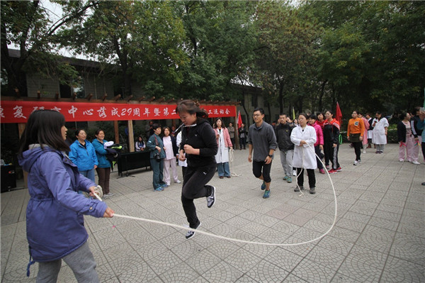 本次运动会共设集体拔河、集体跳绳、协力竞走三个集体项目和跳绳、踢毽、沙包掷准、赶猪跑、自行车趣味比赛等五个个人项目。各参赛运动员齐心协力,顽强拼搏,为集体荣誉奋力拼杀。机关分会、后勤分会、医技分会分获拔河比赛一、二、三名;机关分会、医技分会、内科分会分获集体跳绳冠亚季军;机关分会和后勤分会并列协力竞走比赛冠军、康复分会获协力竞走比赛季军。在单项比赛中,设备处李金茹获1分钟跳绳比赛冠军;保卫处陈爽分获踢毽和赶猪跑两项冠军;检验科刘媛获沙包掷准比赛冠军;感染科刘明建获趣味自行车比赛冠军。