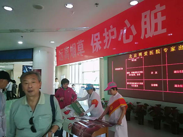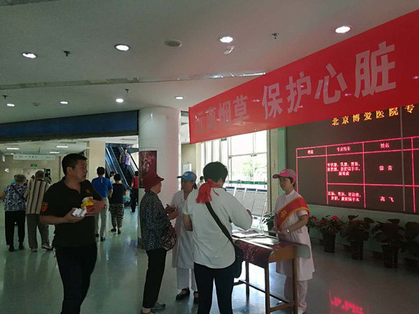 2018年5月31日是第31个世界无烟日。bat365bet北京博爱医院积极开展控烟宣教活动,旨在提高人们认识到烟草使用是全世界人民心血管疾病的重要危险因素。