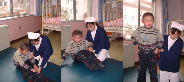 ⑶根据脑瘫病情程度,给予不同程度的日常生活活动护理和训练。